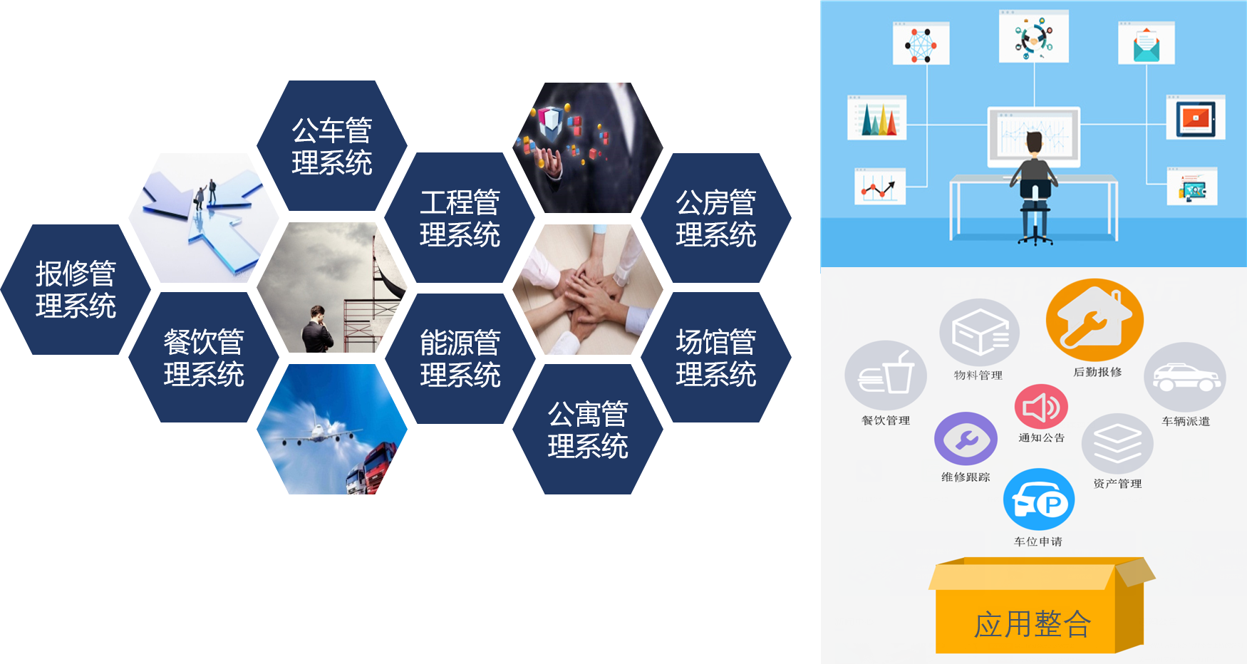 智慧后勤服务管理平台利用物联网、云计算、大数据、移动互联网等新一代信息技术, 一站式整合后勤资源,构建统一、开放的新型现代化后勤服务保障体系,为教育、政府、医疗、企业等行业提供一体化、数字化、便捷化的后勤服务。主要功能包括报修管理、公车管理、工程管理、餐饮管理、能耗管理、房屋管理等模块。